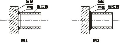 3、沿著短套筒倒角進(jìn)行施焊一周至規(guī)定焊縫要求(見圖2);